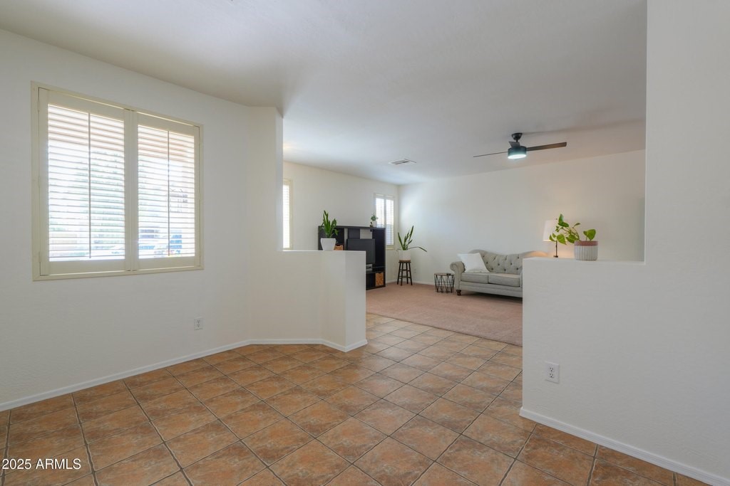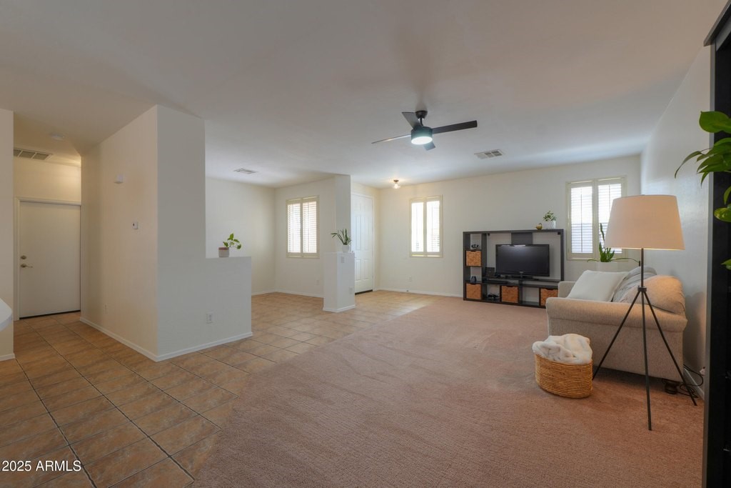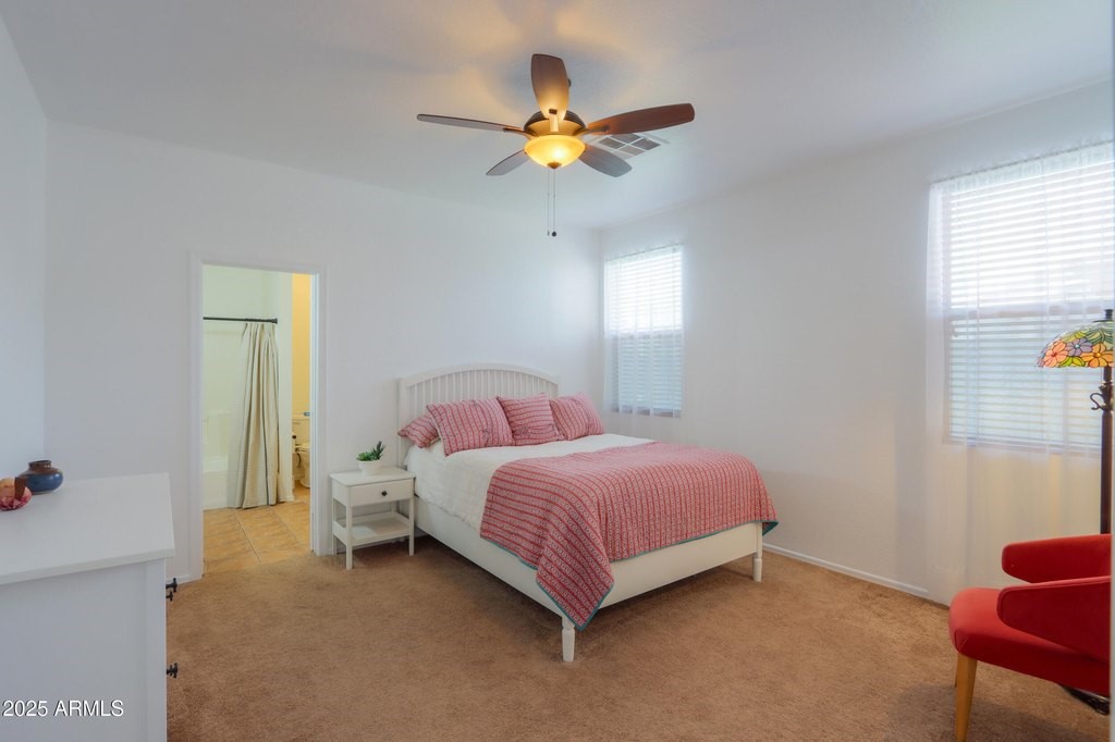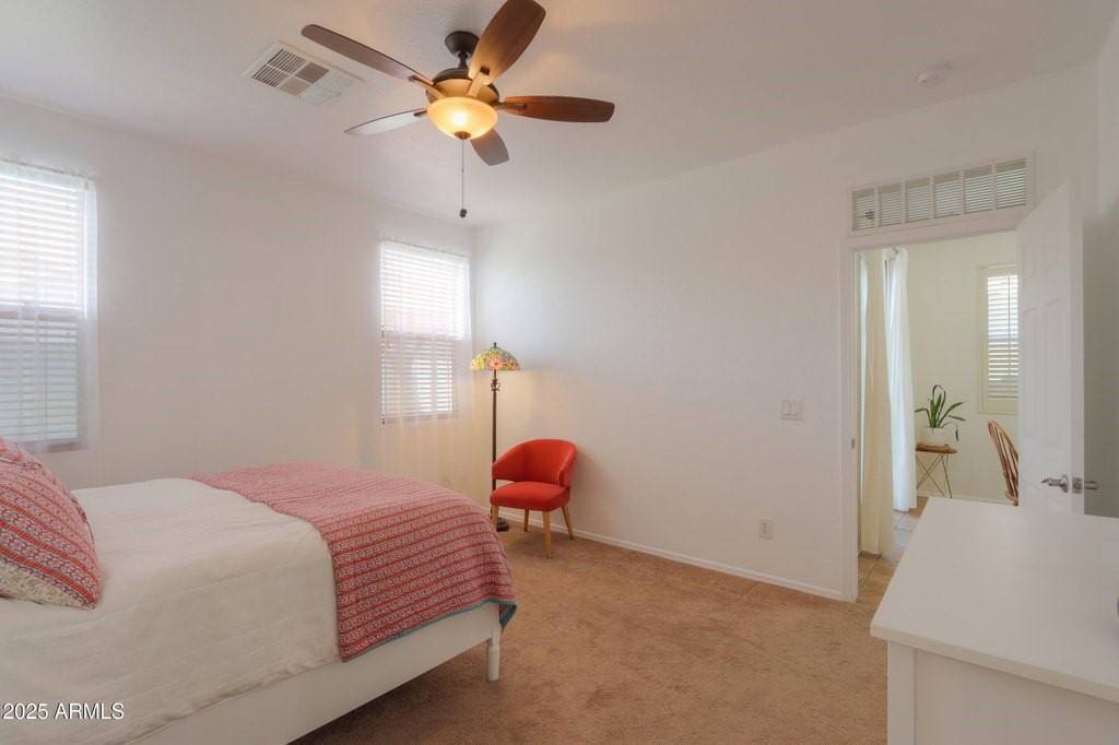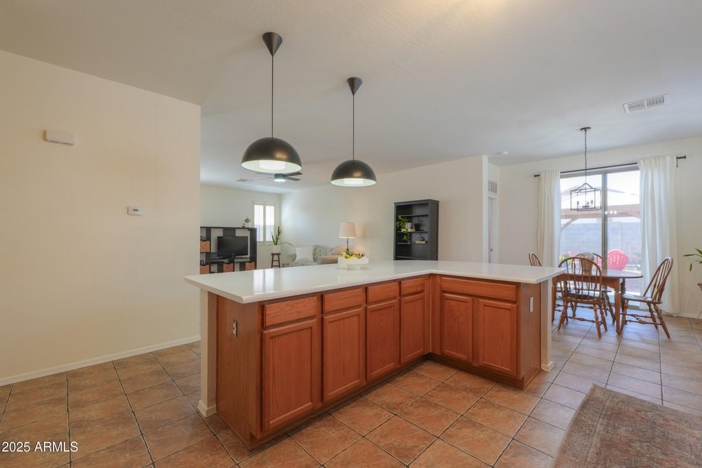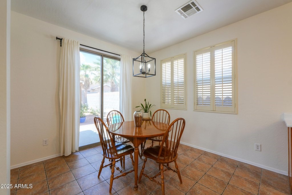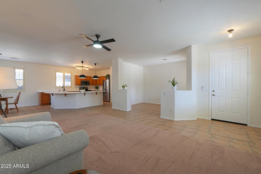 This move-in ready home is ideal for first-time buyers, seasonal residents, or anyone seeking a low-maintenance lifestyle. Located on a spacious corner lot, the home features fresh interior paint throughout, updated bathrooms, and a bright kitchen with new stainless steel appliances. The open layout creates a welcoming feel, perfect for quiet evenings or entertaining. Step outside to your private backyard retreat, fearturing easy-care turf and a pergola for added shadeperfect for enjoying Arizona's beautiful weather. Nestled in the heart of Maricopa Meadows, you'll love being close to scenic parks, walking paths, a community lake, and even a disc golf course. Schools for all ageselementary through high schoolare conveniently located right within the neighborhood.
